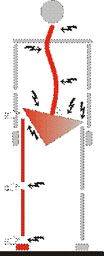 We beginnen met het stuitbeen en controleren de stand van iedere wervel door met de duimen de gehele wervelkolom langs te gaan. Indien het gebied rondom een doorn uitsteeksel pijnlijk is, duidt dit meestal op een scheve wervel.